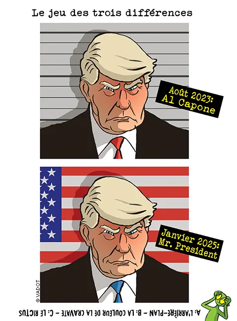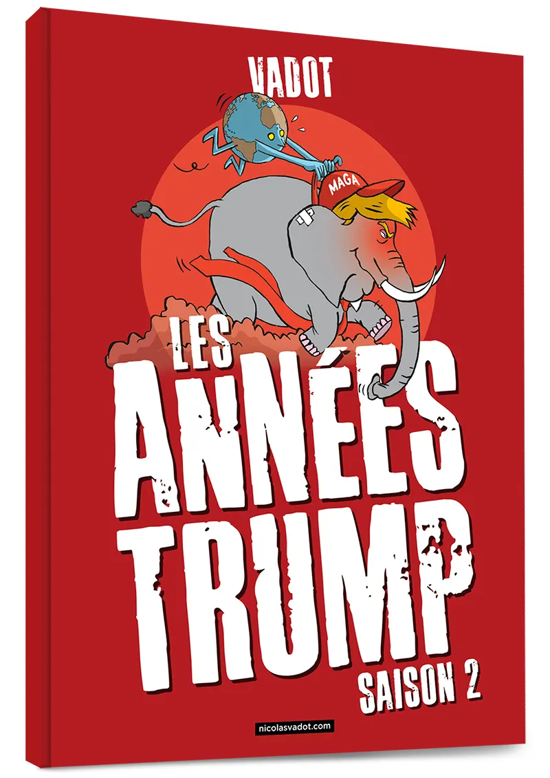 Ceci n’est pas une dystopie : un repris de justice inculte, colérique et fasciné par les dictateurs est bel et bien revenu aux commandes de la première puissance mondiale. Attachez vos ceintures ! De l’élection présidentielle de 2024 à la bromance avortée avec Elon Musk, en passant par la tragédie de Gaza, la guerre en Ukraine, un nouveau pape, mais aussi l’émergence de l’IA générative et bien d’autres choses, revivez en dessins, tous publiés dans Le Vif et L’Echo, deux ans d’une actualité qui est en train de changer la face du monde.